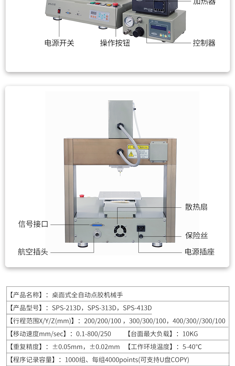 • 三軸桌面式硅膠密封膠點膠機SPS-413D