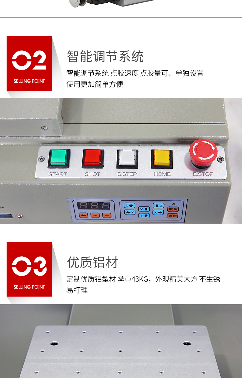 1.取代人工特點的點膠作業,實現機械化生產 。