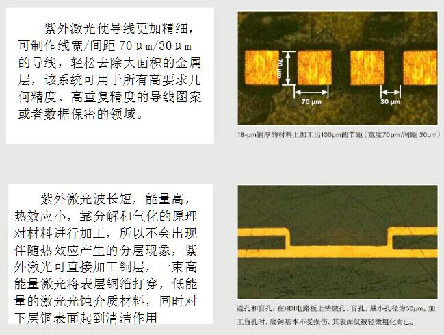 快速將拼板生產的PCB分割成獨立的電路板,加工LTCC,加工半固化片,在FR4上鉆孔、鉆微孔、激光直接成型電路圖形等。紫外激光與其他加工方式或其他激光相比,切割邊緣更整齊,外形尺寸精度更高。產品加工模式無間隙切換,只需點擊軟件菜單導入新加工項目即可。